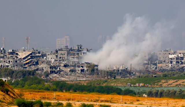 epa10949999 A view of destroyed buildings as smoke billows from the northern part of the Gaza Strip as a result of Israeli shelling, as seen from Sderot, southern Israel, 31 October 2023. Over the last day Israeli forces struck approximately 300 targets as part of its 'expanded ground operations' in the Gaza Strip, the Israel Defense Forces (IDF) said on 31 October. More than 8,000 Palestinians and at least 1,400 Israelis have been killed, according to the IDF and the Palestinian health authority, since Hamas militants launched an attack against Israel from the Gaza Strip on 07 October, and the Israeli operations in Gaza and the West Bank which followed it. EPA/HANNIBAL HANSCHKE