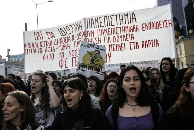 Oltre 15mila persone stanno partecipando alla manifestazione studentesca nel centro di Atene contro un disegno di legge che prevede l’istituzione di università private nel Paese, attualmente vietate dalla Costituzione.