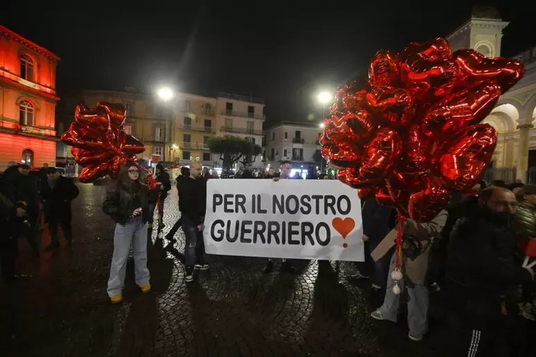 A Nola oltre cento persone hanno partecipato a una fiaccolata con palloncini a forma di cuore e uno striscione con la scritta «Per il nostro guerriero». La pioggia ha trasformato il corteo in un momento di preghiera nel duomo cittadino.