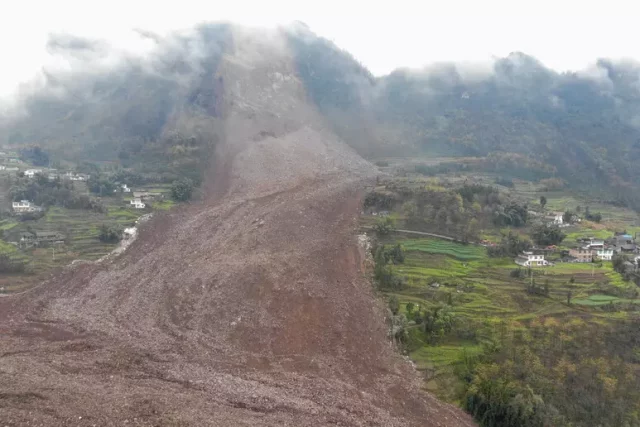 La frana si è trasformata in una colata di detriti che ha causato un accumulo di materiale instabile su un costone della montagna lunga circa 1,2 chilometri, pari a un volume totale di oltre 100.000 metri cubi, secondo una prima valutazione degli esperti locali.