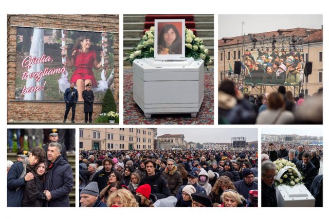 Diecimila persone all’interno e all’esterno della basilica si sono strette al dolore della famiglia della ventiduenne uccisa dal fidanzato Filippo Turetta. “Che la memoria di Giulia ci ispiri a lavorare insieme contro la violenza, che la sua morte sia la spinta per cambiare”, il messaggio letto di papà Gino in chiesa. Tanti i giovani e gli studenti presenti. Un forte applauso, grida, campanelli e chiavi scosse verso il cielo hanno salutato la bara bianca al termine del rito funebre. Un applauso e palloncini bianchi a forma di cuore hanno salutato l’uscita del feretro di Giulia anche dalla chiesa di Saonara dove si è tenuta la parte privata della cerimonia funebre. Gino Cecchettin – stretto ai figli Elena, in lacrime, e Davide – ha atteso che il feretro entrasse nel mezzo funebre e a piedi si è diretto verso il cimitero dove Giulia sarà sepolta vicino alla madre, scomparsa un anno fa. “Guardo il cielo e ti vedo in mezzo alle stelle, che fai a metà di un gelato con la mamma. Prima o poi ci rivedremo, lo prometto, ma fino a quel momento so che sarai con me, perché sei il mio angelo custode, perché in fin dei conti lo sei sempre stato”. E’ il saluto di Elena alla sorella.