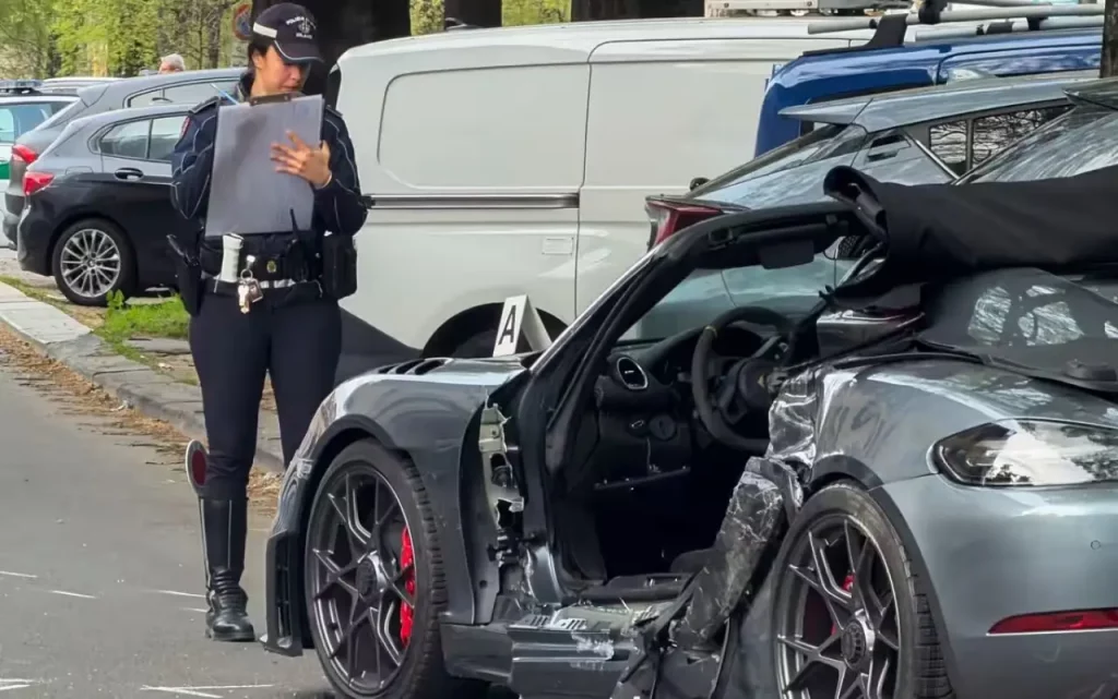 Secondo una prima ricostruzione, la dinamica si è sviluppata in pochi metri, senza possibilità di recupero. L’auto, una Porsche Spyder con targa tedesca e un valore che supera i 200mila euro, ha colpito in sequenza diversi veicoli in sosta, riportando danni gravissimi nella parte anteriore.