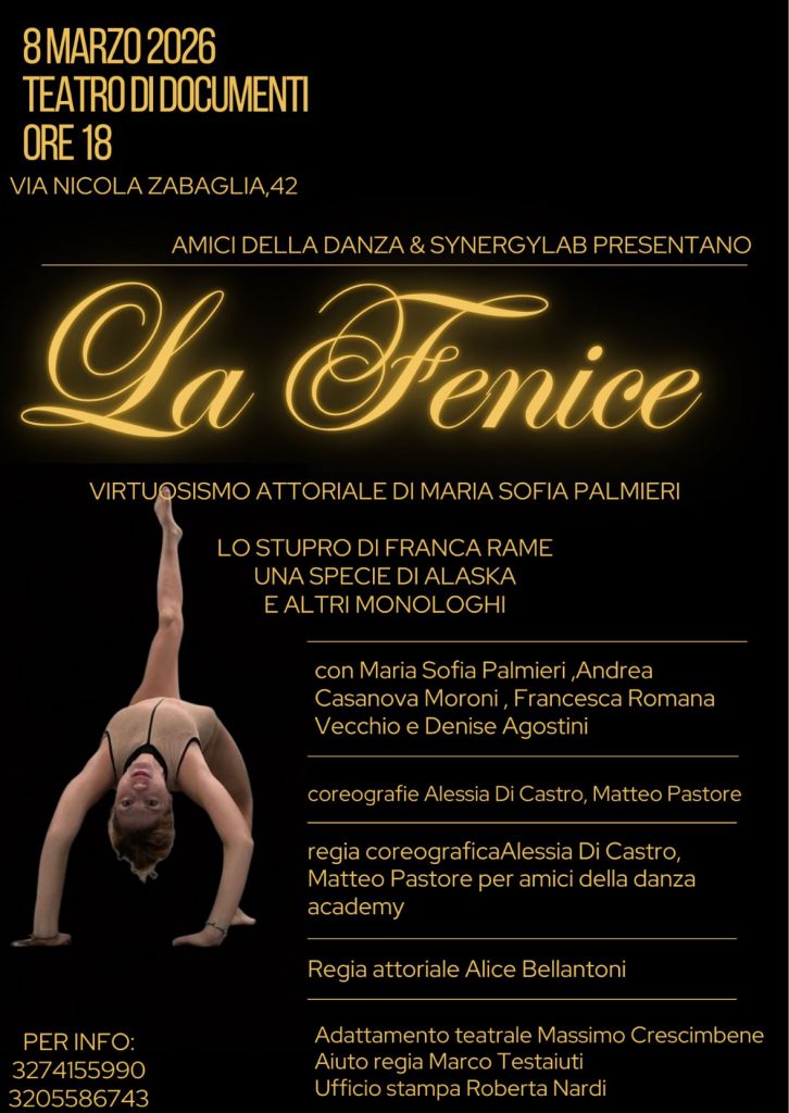Il prossimo 8 marzo 2026, in occasione della Giornata Internazionale della Donna, il palcoscenico del Teatro dei Documenti ospiterà un evento artistico di grande spessore: “La Fenice”.