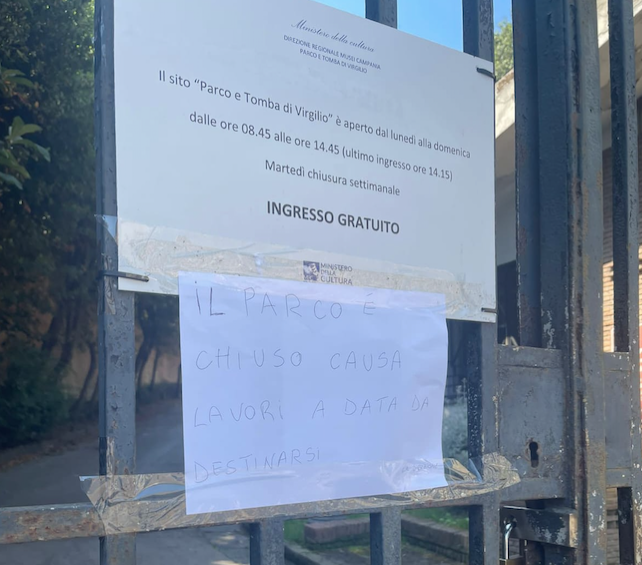 «Ho ricevuto una segnalazione, con una foto di un cartello affisso al cancello di ingresso del Parco, un foglio A4, scritto a penna, con il quale, si comunica la chiusura “per lavori a data da destinarsi” – dichiara Ingenito – Due mesi fa segnalai, con foto e video,  le problematiche di sicurezza per le condizioni in cui versava un cantiere fermo da tempo per la tomba di Virgilio, nella Crypta Neapolitana, tanto che, a seguito di uscite su giornali e portali, il Comune confermò le difficoltà esistenti per quel progetto di recupero e messa in sicurezza, mai concluso che coinvolge anche la Sovrintendenza».