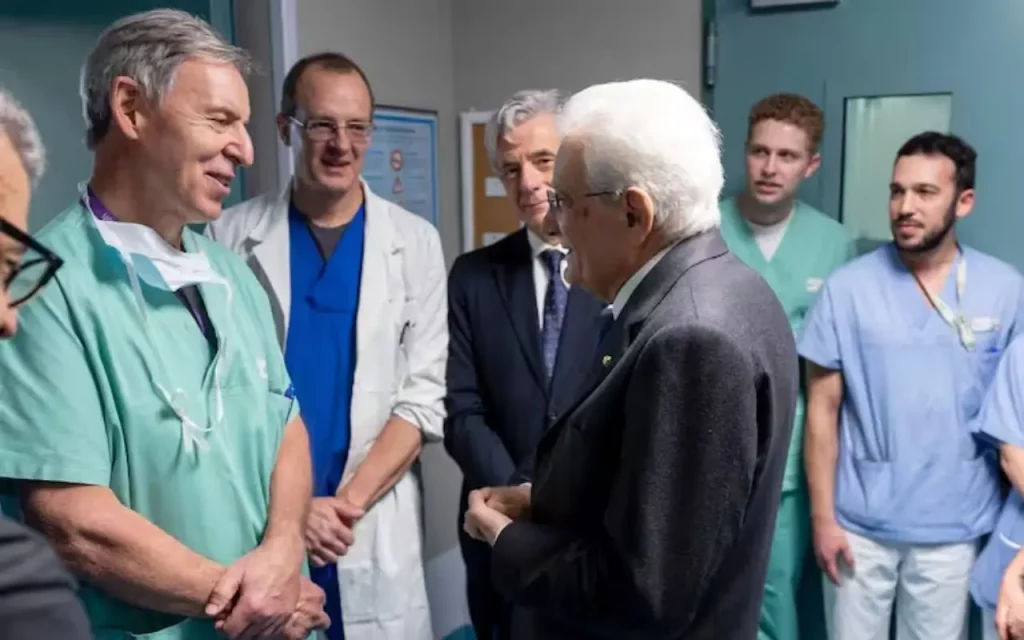 Durante la visita, Mattarella ha voluto ringraziare personalmente i medici e gli operatori sanitari impegnati nelle cure. Parole semplici ma significative, pronunciate nel corso dell’incontro con il personale dell’ospedale, a cui il presidente ha espresso riconoscenza per il lavoro svolto quotidianamente e per l’impegno dimostrato in questa circostanza straordinaria.