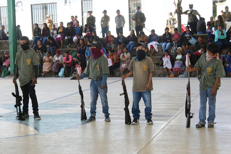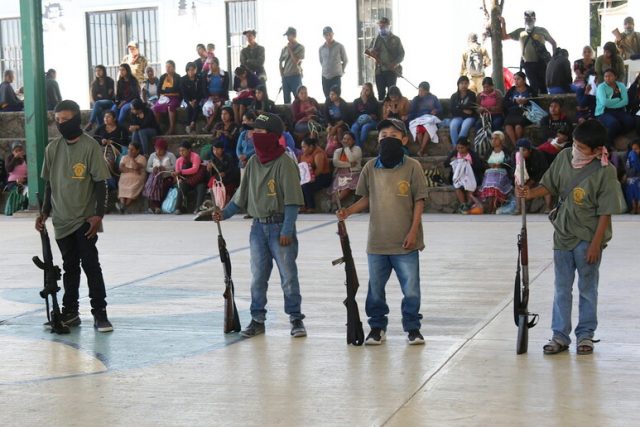 Un gruppo di una ventina di bambini fra gli undici e i 15 anni e di entrambi i sessi, hanno giurato in una località della selva messicana per confermare il loro ingresso nei ranghi della polizia comunitaria di Ayahualtempa, nello Stato messicano di Guerrero, al fine di contribuire alla difesa della loro città dai costanti attacchi della criminalità organizzata.
