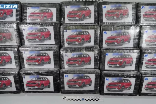 Il cane antidroga della Guardia di Finanza, Ghimly, ha segnalato la droga nell’auto che è stata poi trovata durante l’ispezione nella caserma “Nicola Calipari” dai poliziotti. In un vano creato sotto il pianale della vettura gli agenti hanno trovato venti involucri con la cocaina su cui era stato spruzzato del profumo e sui cui c’è la foto di un’automobile.