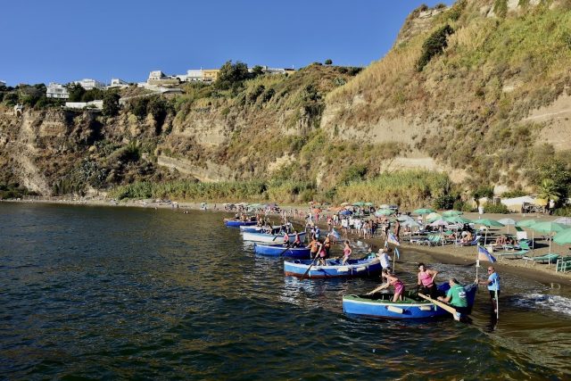 Quest’anno il Palio si svolgerà domenica 4 agosto alle ore 17 nella bellissima cornice di Acquamorta a Monte di Procida, la competizione, si divide in due “trofei”, uno dedicato ad equipaggi esclusivamente femminili chiamato “Trofeo delle Nereidi” e uno maschile. La voga utilizzata nella gara, è molto particolare infatti i vogatori, in coppia, utilizzano i remi restando in piedi, con lo sguardo rivolto in avanti.