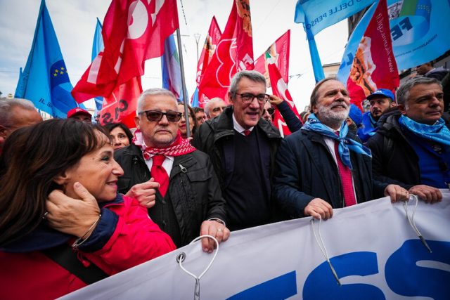In piazza Matteotti gli interventi del segretario generale della Cgil, Maurizio Landini, del segretario generale della Uil Campania e Napoli, Giovanni Sgambati, preceduti da alcuni delegati dai luoghi di lavoro dei settori del commercio, dell’edilizia, dell’industria e dei pensionati.
