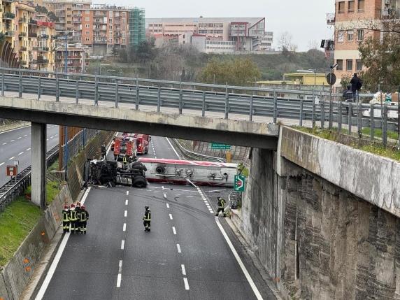 Napoli, si ribalta un’autocisterna in Tangenziale: evacuati alcuni condomini della zona