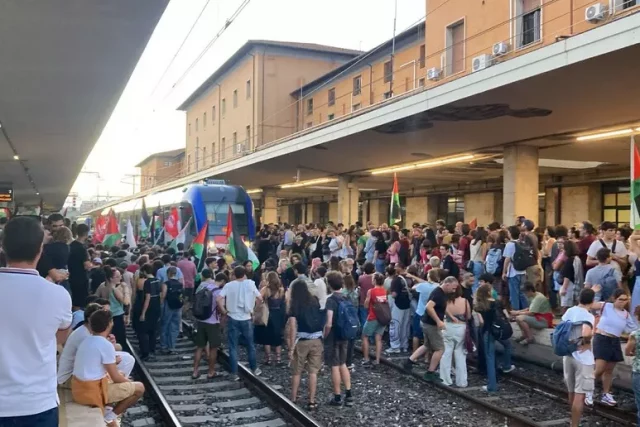 Centinaia di manifestanti Pro Pal stanno bloccando la circolazione dei treni alla stazione di Pisa.