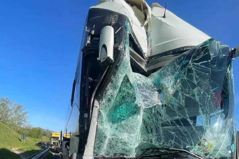 È lì che il mezzo sul quale viaggiavano è andato ad urtare con violenza un autoarticolato che lo precedeva. A bordo con i 41 bambini c’erano 6 maestre, 2 mamme e 2 autisti. Tanto spavento, una ferita ad un ginocchio per una maestra e qualche escoriazione per il conducente che era alla guida, molto spavento per 4 bambini in particolare: tutti sono stati visitati sul posto da un medico dell’Ares 118 e nessuno dei 6 feriti è in codice rosso, per tre bimbi un codice giallo.