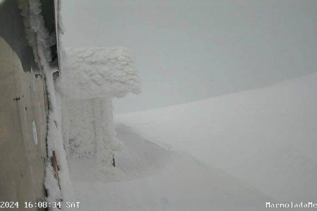 La Marmolada – a 3.343 metri – è stata spazzata da bufere di neve e vento. Le nevicate hanno imperversato anche con temperature -10 gradi sottozero; nelle immagini della stazione meteo ‘Marmoladameteo.it’ la capanna di Punta Penia appare completamente incrostata di neve e ghiaccio. Difficile stabilire un’altezza massima della neve, perchè l’azione del vento ha quasi ‘piallato’ alcune aree, creando invece in altre accumuli di oltre 2 metri.